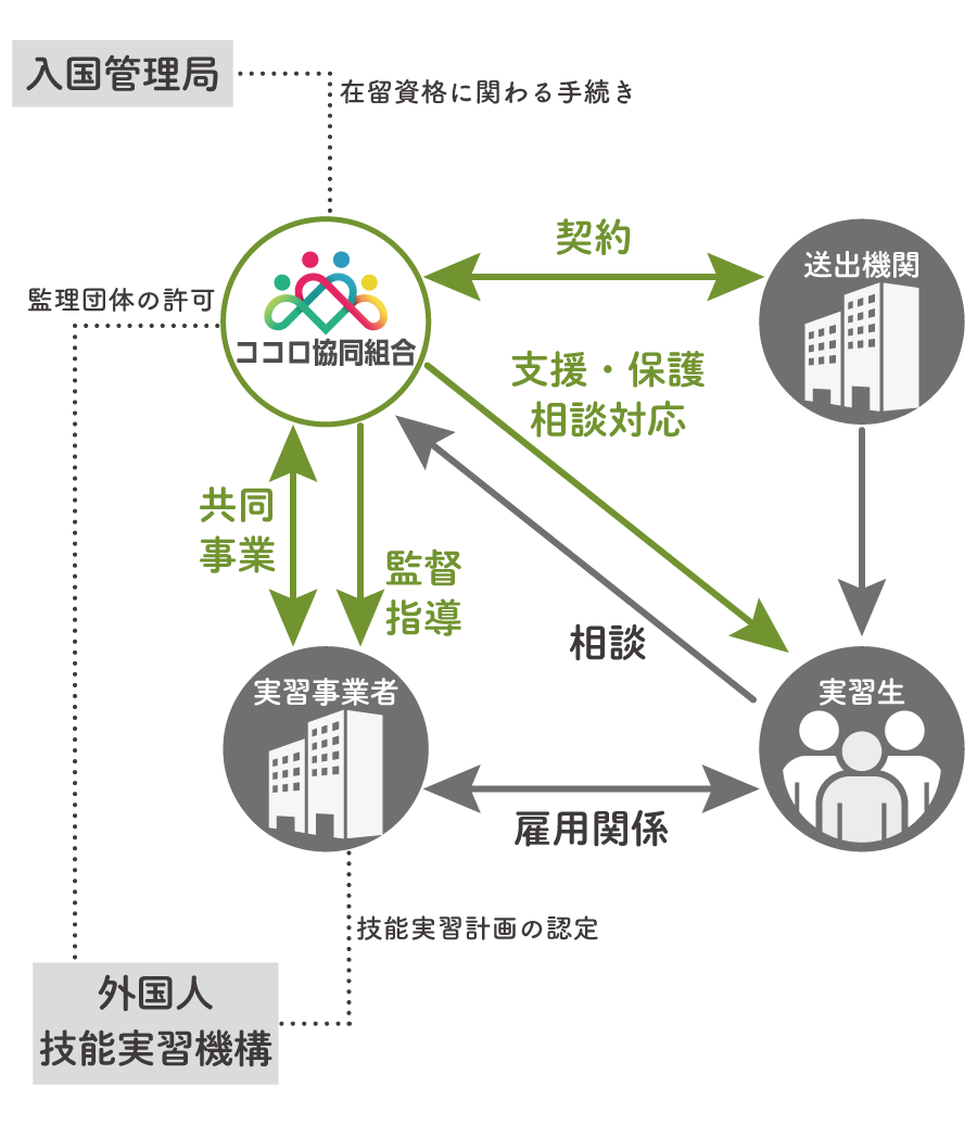 当社では、技能実習制度の基本理念にしたがって適正な制度運用を行うと同時に、関係法令を遵守し、監理団体としての責任を自覚し、関係機関・団体、送出機関、実習実施者、技能実習生などと連携・協力しながら、適正な技能実習制度の実施に努めてまいります。